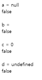 - if 조건식에 '0', null, "", undefined(변수만 선언한 상태) 경우 'false' 리턴