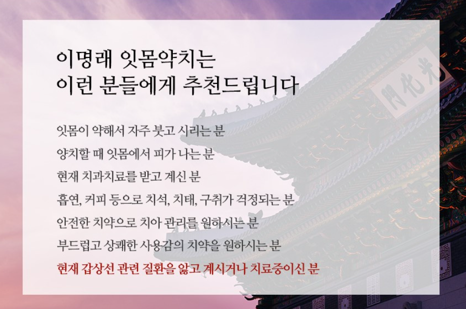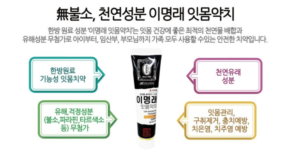 이명래 잇몸약치는 잇몸이 약해서 자주 붓고 시린분, 잇몸에서 피가 나는 분, 안전한 치약으로 상쾌한 치아관리,