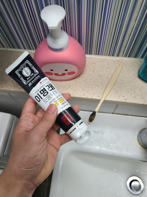 이명래 치약의 향, 맛은 약간 죽염 느낌으로 강도가 세지는 않고 상쾌한 느낌이 있었습니다.