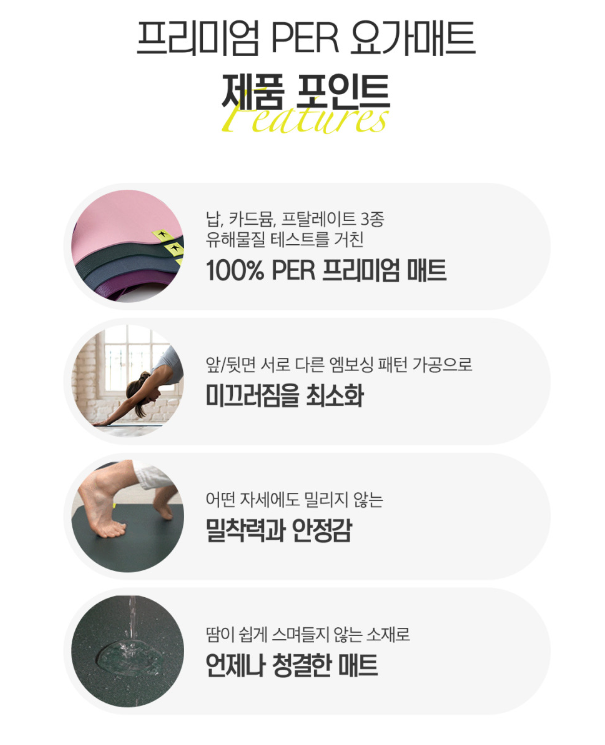 트라택 프리미엄 PER 요가매트는 자극이 적고 유해물질 테스트를 거친 프리미엄 소재 매트로