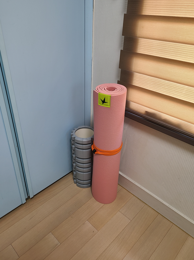 구석에 폼롤러와 요가매트 세워놓기ㅎㅎ