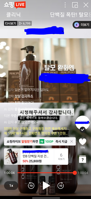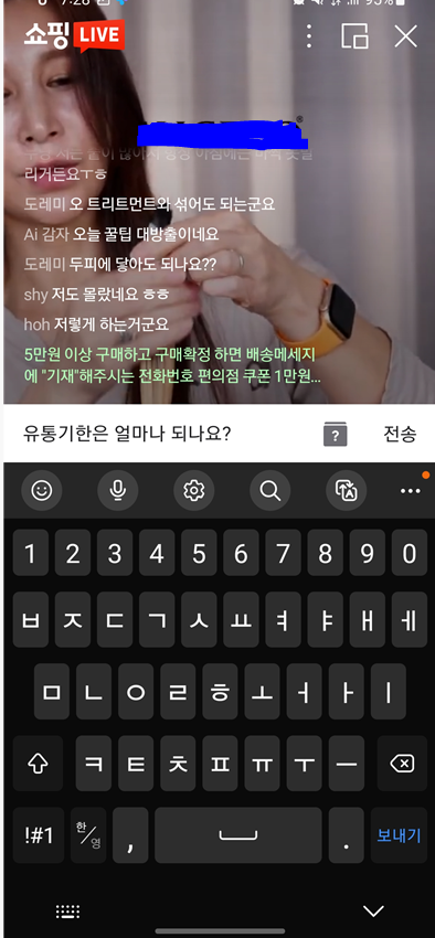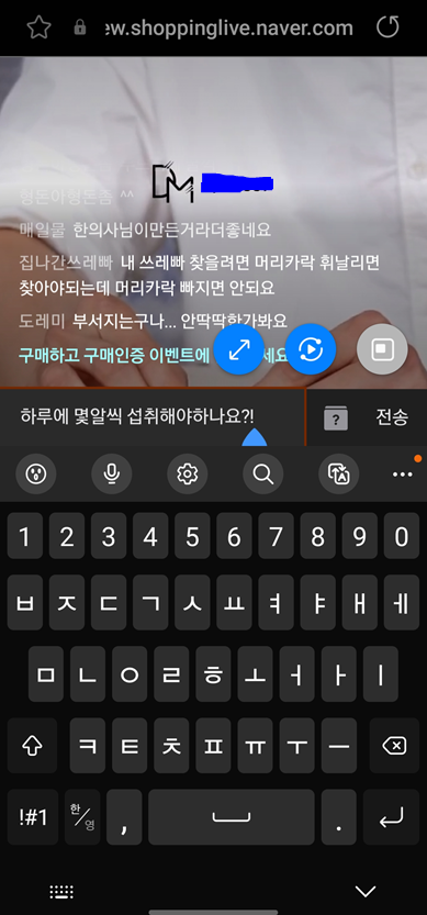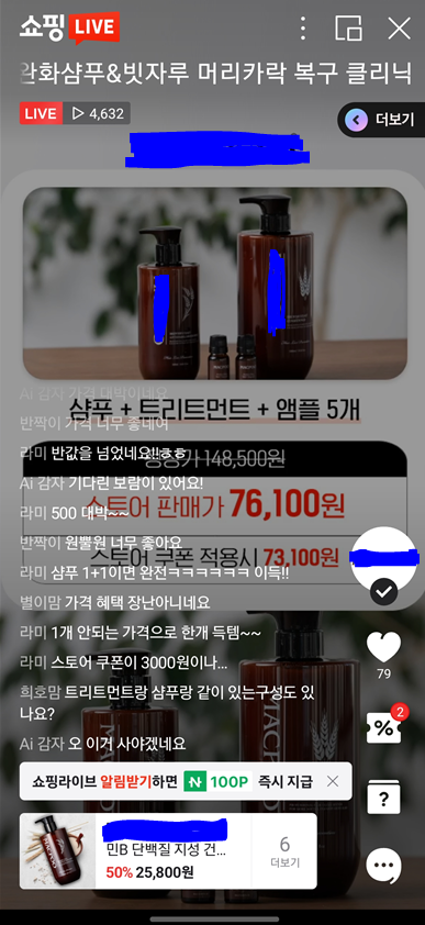 샴푸랑 영양제 라방에 한번 참여해서 채팅을 해보았습니다.