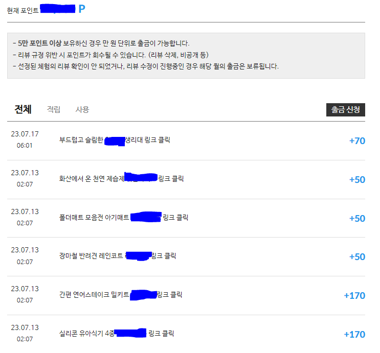 포인트를 모아서 환급을 하시면 됩니다! (포인트 = 현금 1:1 동일)
