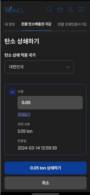 일단 0.05t 최소 금액으로 한번 구매하였고, 1000원어치도 살 수 있었습니다!