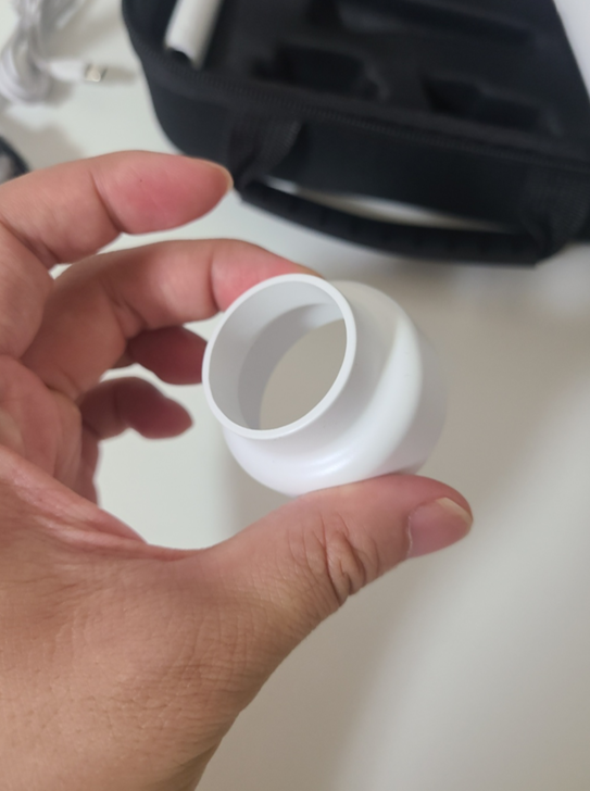 투명한 케이스 부분이 빨아들이는 청소기 흡입구 쪽이고 손잡이 쪽 뒤에가 바람을 내보내는 에어건 입구입니다.