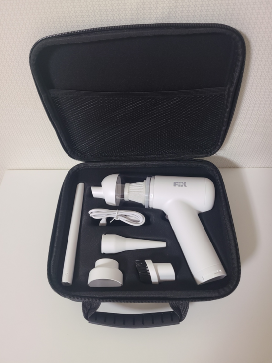 픽스 무선 에어건 휴대용 청소기는 기본으로 제공되는 프리미엄 하드파우치에 담겨있었습니다.
