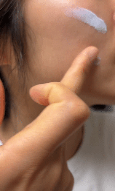 세안 후 기초 케어를 마치고 마지막 단계에 타이디랩 퍼플 톤업 선크림을 발라보니, 크림처럼 부드럽게 펴 발리면서 피부에 가볍게 흡수되었습니다!