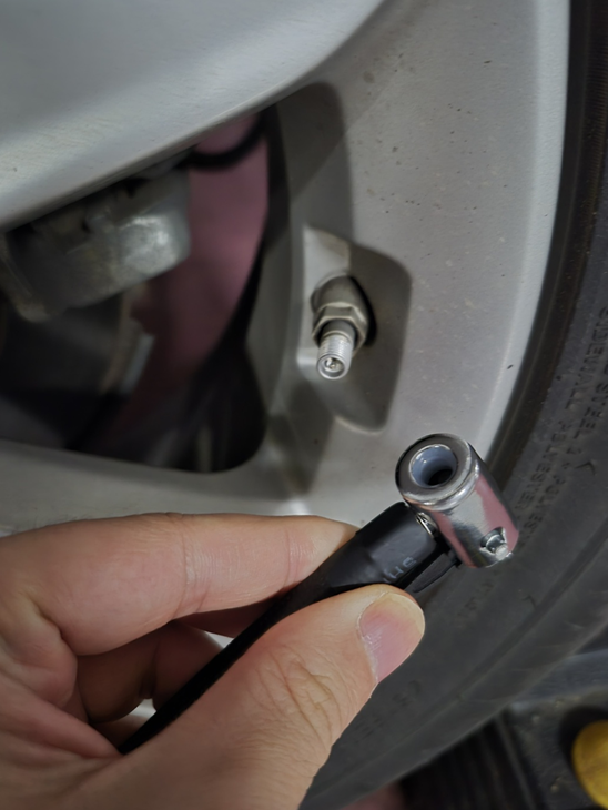 이번에는 타이어 주입 노즐을 갈아끼고 똑같이 작동만 시키면 끝!