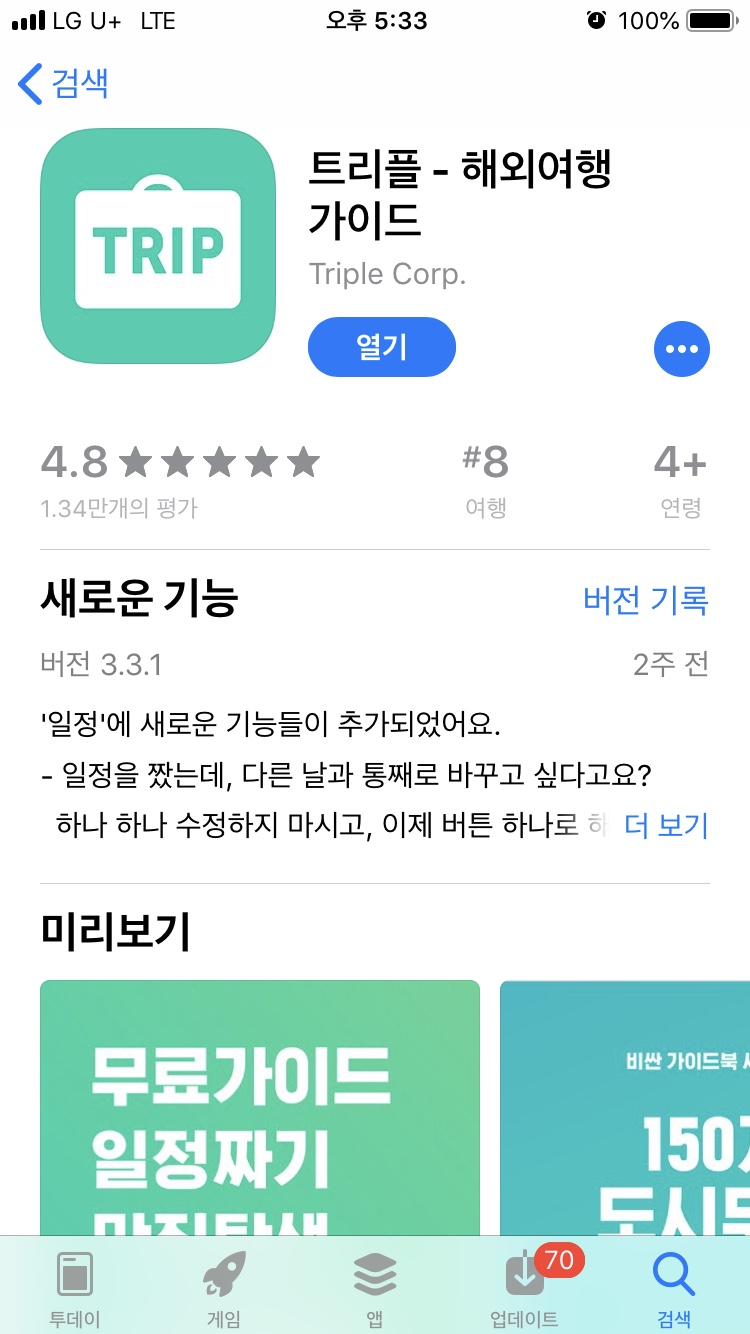 ‘트리플’ 이라는 여행 App으로 같이 여행가는 친구나 일행하고