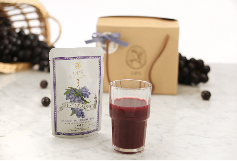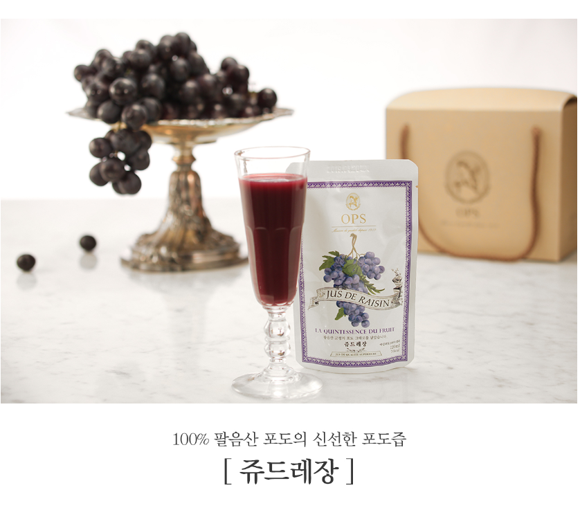 '쥬드레장'은 일교차가 크고 일조량이 풍부한 상주 포도 100% 천연 과즙입니다.